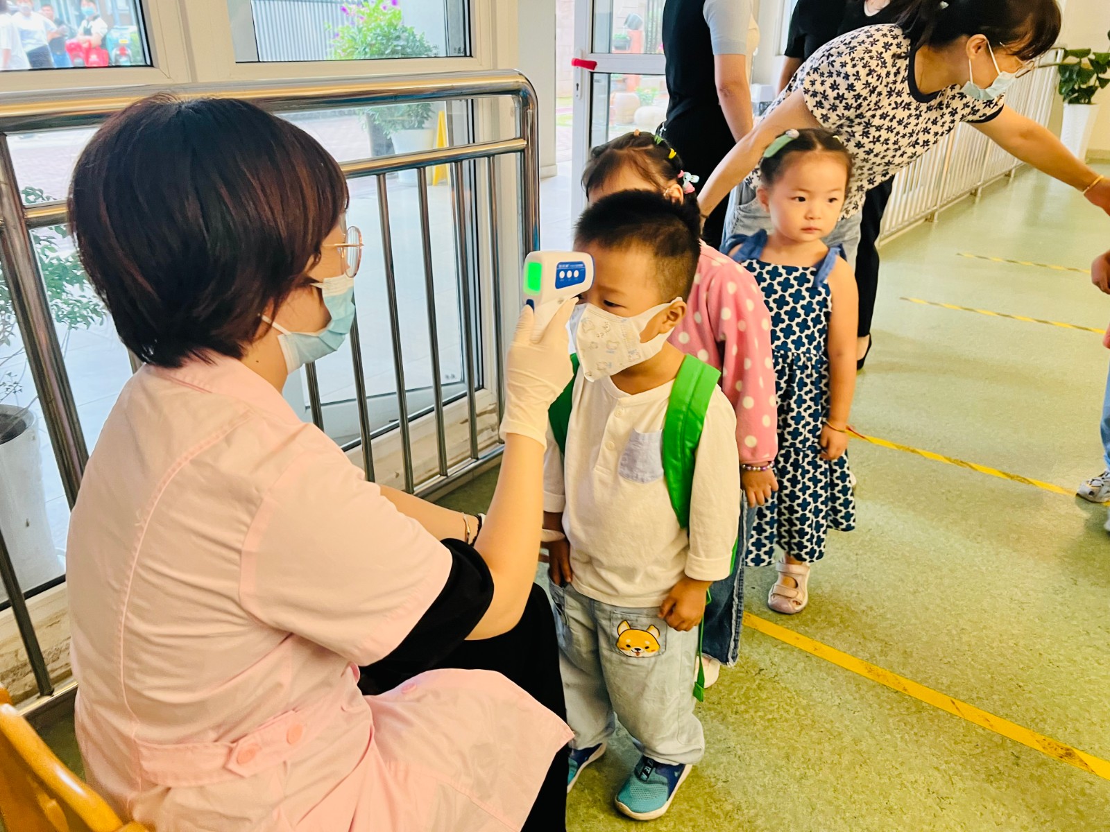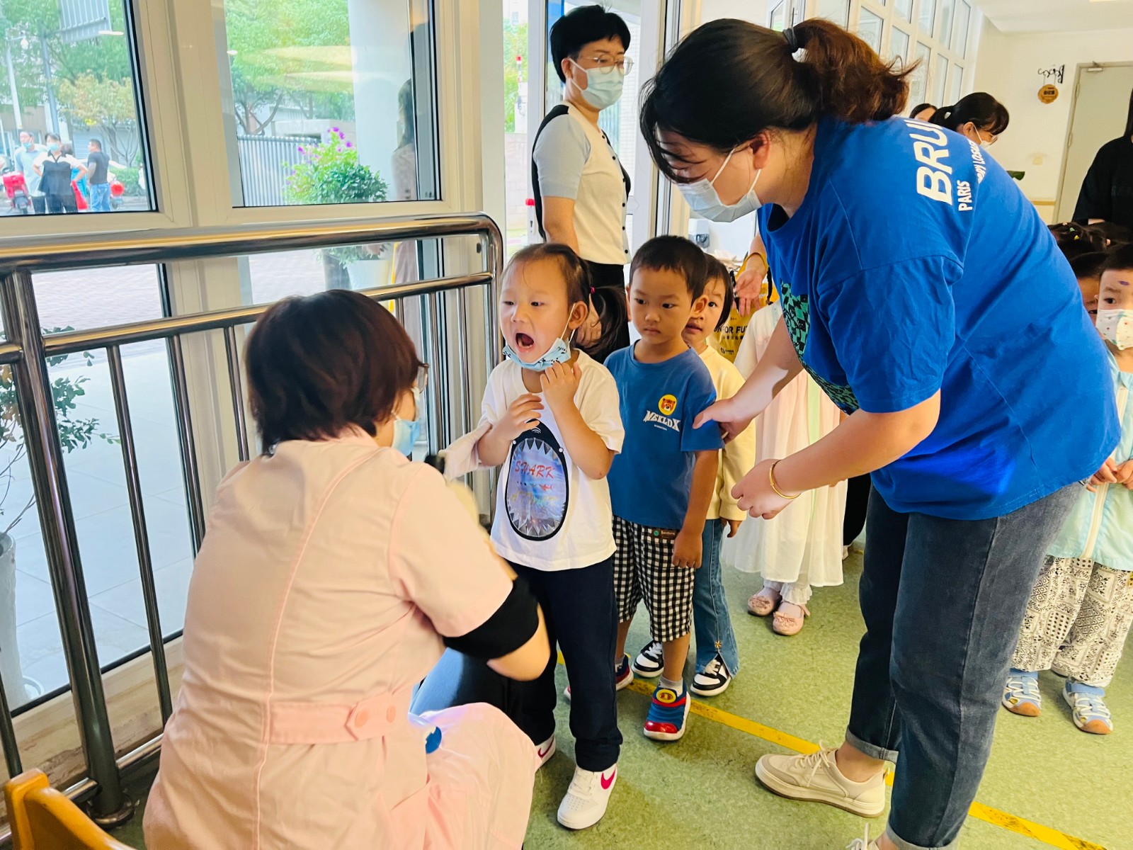 伸出小手、张开小嘴,测测体温,保健老师在认真地为我们晨检呢!