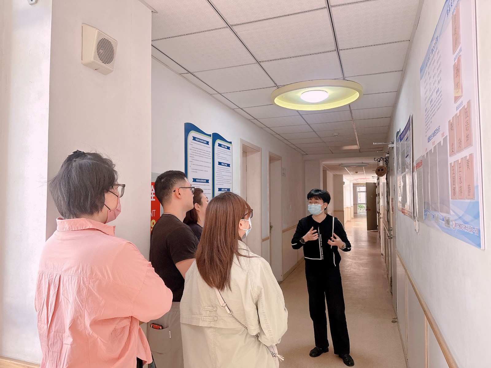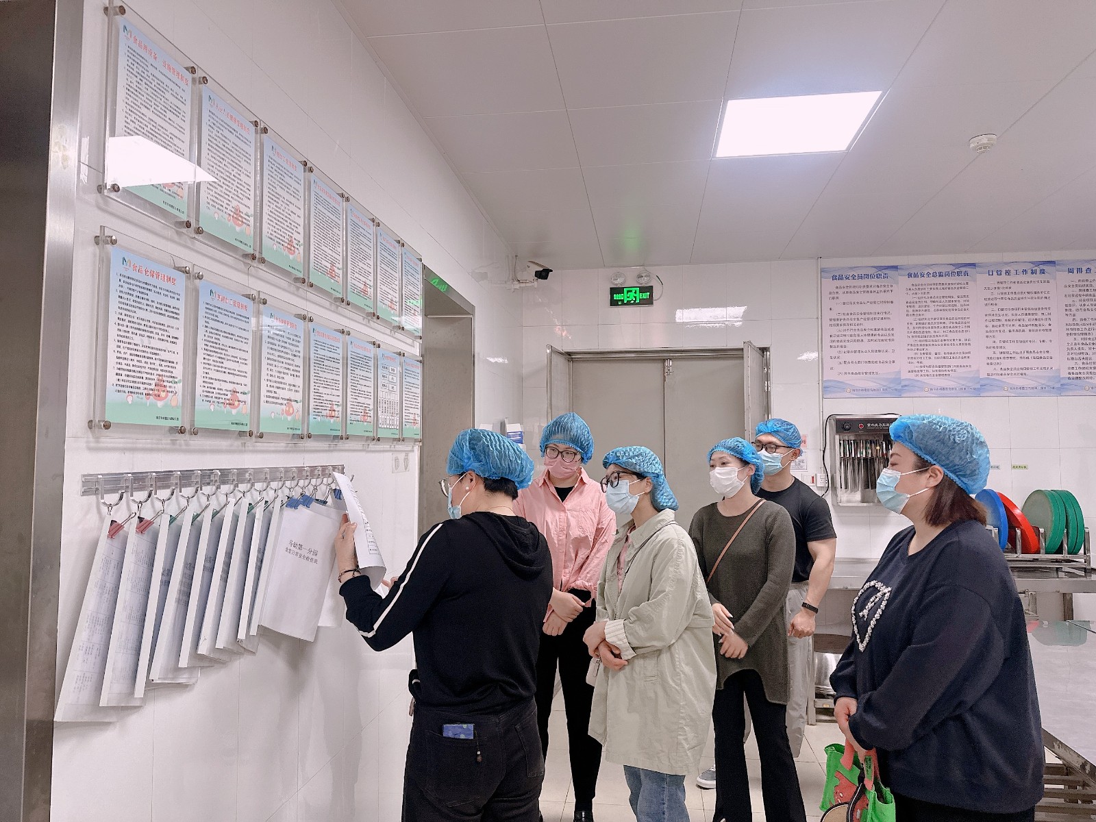 带领膳食委员会成员进入食堂。参观过程中,周主任向家长们介绍了食堂的设施设备、工作人员的操作流程、留样记录等。